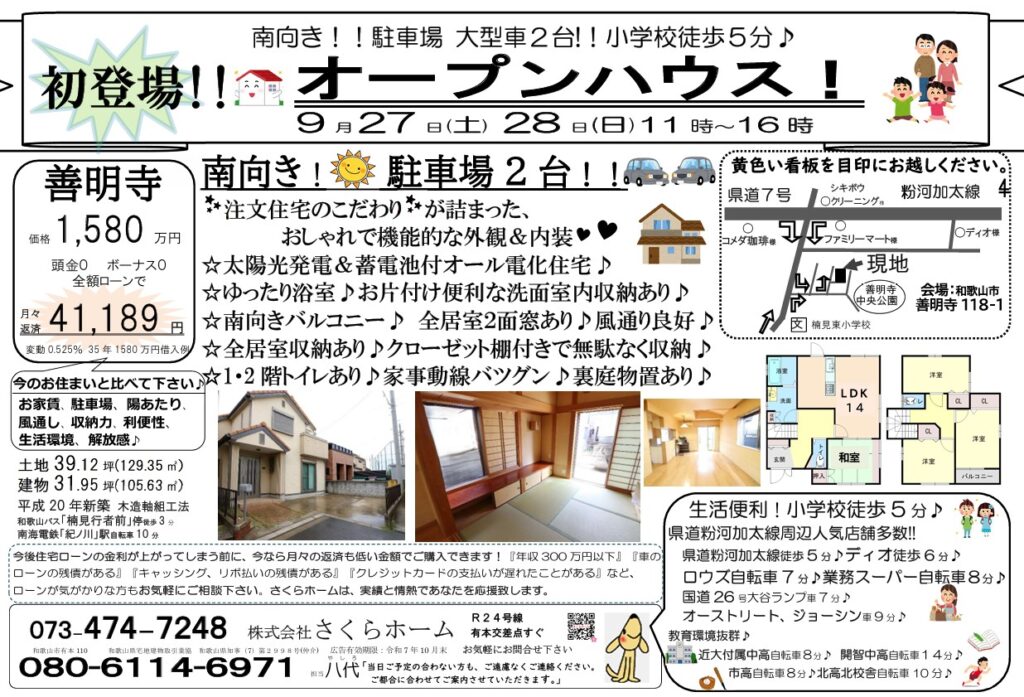 令和7年9月27日~28日 11:00~16:00オープンハウス開催🍀